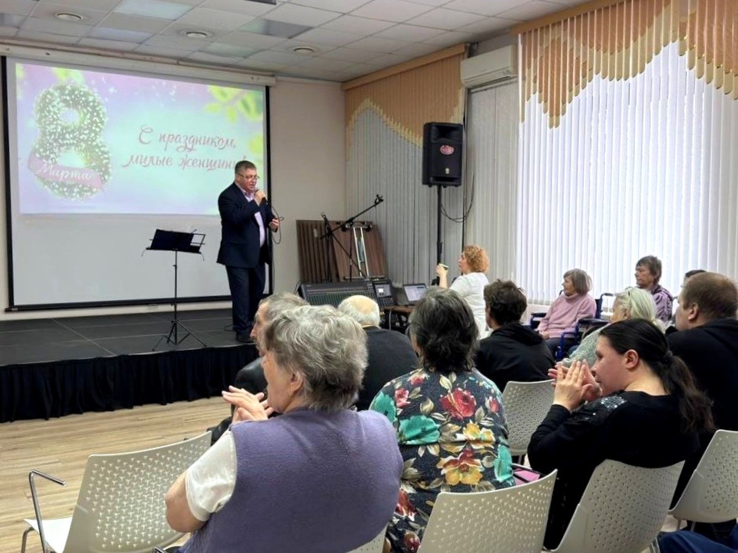 Любимые хиты подопечных отделения «Люблино» прозвучали со сцены накануне праздника. Участники вокального дуэта «Поем вместе» Татьяна Иванова и Владимир Савенко поздравили слушателей с 8 марта и подарили приятные музыкальные мгновения.