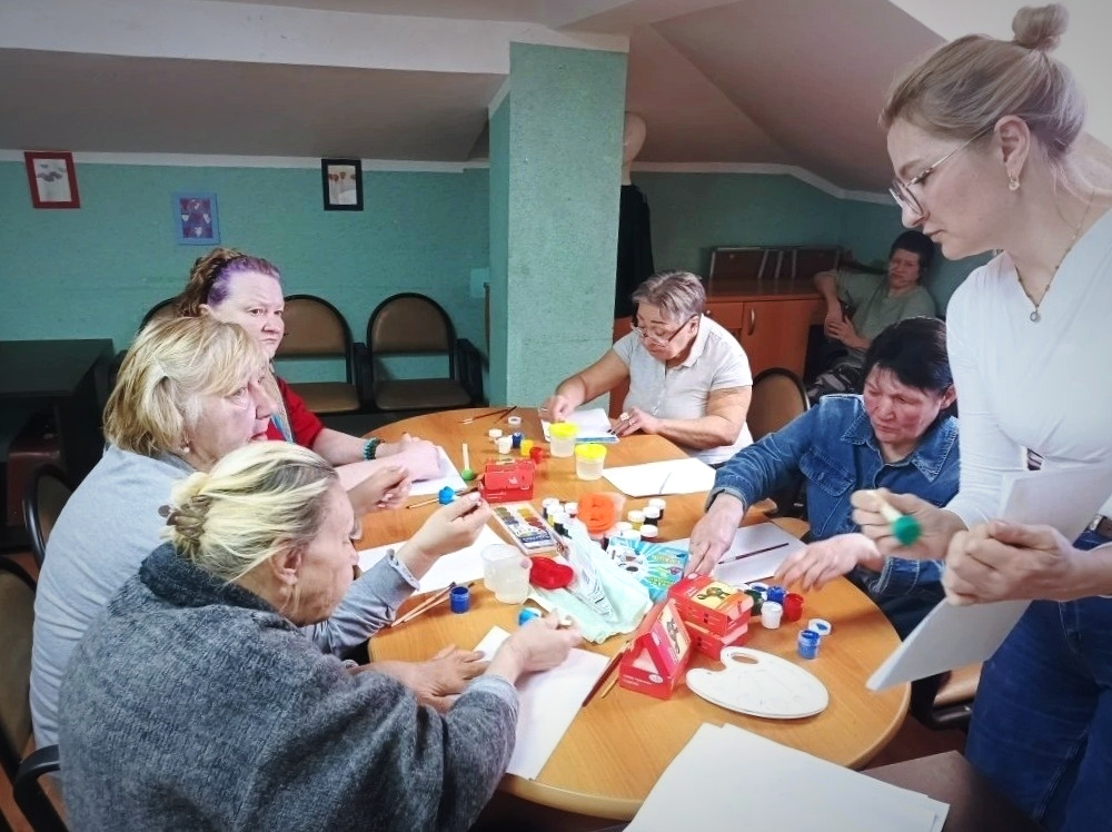 «На занятии участницы использовали разнообразные приспособления: мягкие валики для широких мазков, губки для текстурных эффектов, тонкие и широкие кисти для детальной проработки, а также пальцы и даже лопатки для смелых экспериментов. Атмосфера была наполнена вдохновением – работы получились разные, передающие внутренний мир каждой участницы», - рассказала Вера Шкаликова, заведующий отделением «Ясенево».